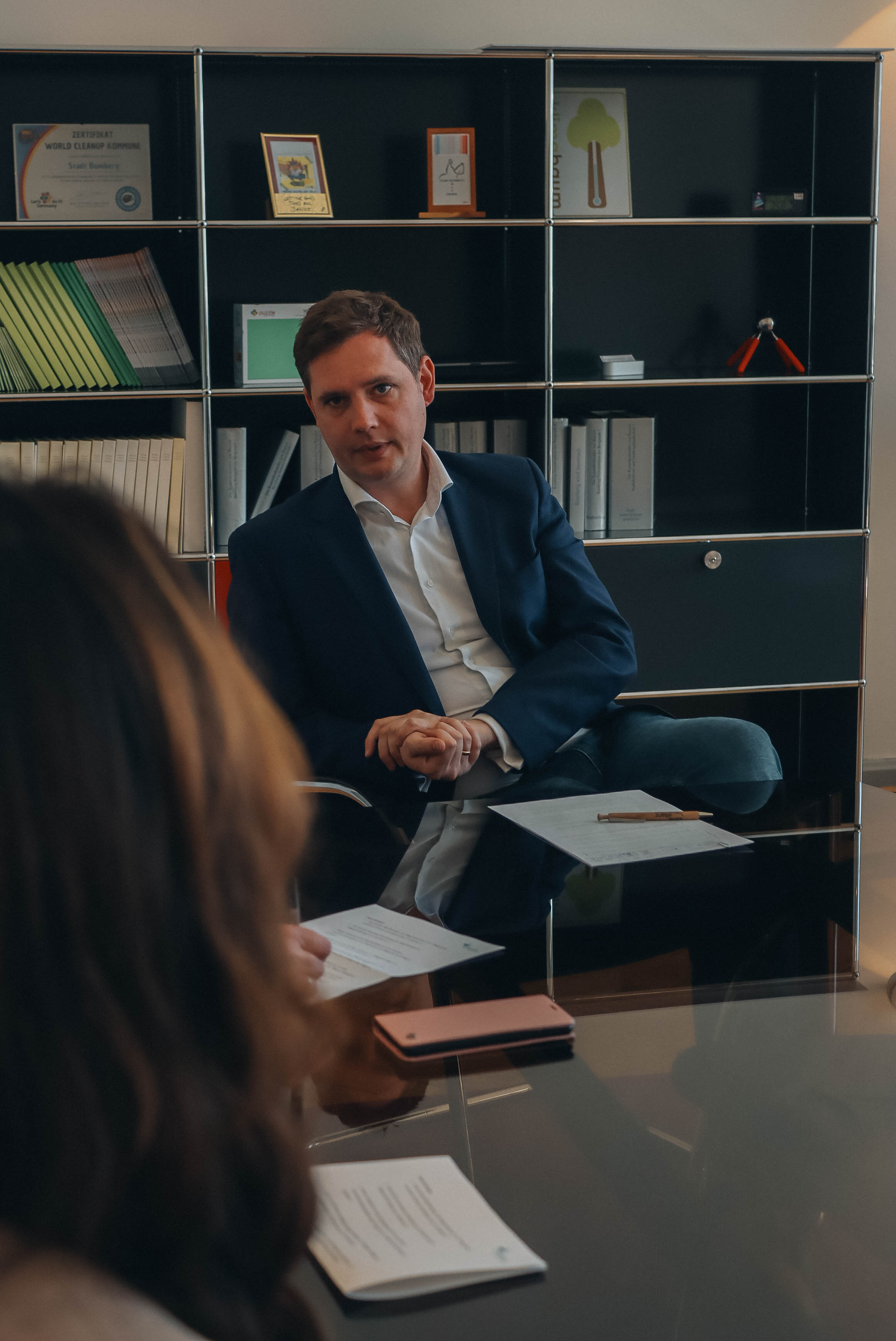 Jonas Glüsenkamp ist 2. Bürgermeister der Stadt Bamberg und Sozialreferent. Er setzt sich intensiv mit den Herausforderungen in der Pflege auseinander und kennt die Situation von Pflegebedürftigen, Angehörigen und Fachkräften genau. In unserem Interview betont er: „Pflege ist keine Nebensache – der zu pflegende Mensch muss gesehen, ernstgenommen und ihm Sicherheit gegeben werden.“